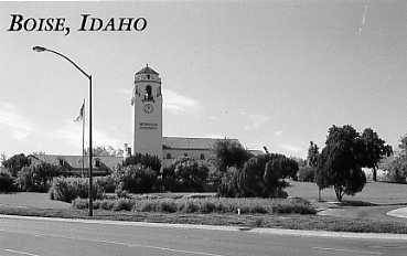 The first train depot in Boise, Idaho, was built in 1887. It was a modest board and batten structure built a short distance from the present building. That first building did NOT have a clock tower.