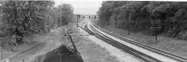 Photo below.. Mosaic view looking east (geographically south) from the steps of Miller Tower. Tracks just beyond the signal bridge, left to right, are the Lurgan Subdivision, No.4 track, No.1 track, and No.2 track. The Potomac River is beyond the woods off to the left. It is a frequent sight to see deer crossing the tracks in the vicinity of the signal bridge going to and from the river.