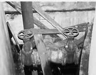 Above.. Valves situated between the pair of old water tanks atop the hill across the tracks from the tower. The tanks were retired from service in 1955.