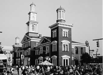 BALTIMORE - CAMDEN STATION (B&O) - Baltimore City, Camden & Howard streets. Brick. Built late 1850s and early 1860s, later altered. One-time headquarters of B&O. Trains were accommodated on two levels. Building has been cosmetically restored to original appearance. Reuse pending. (New MARC commuter station is located several hundred feet south of site.) Photo taken 2003.
