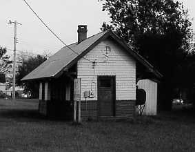 EAST NEW MARKET (Dorchester & Delaware/PRR) - Dorchester County - frame.. Now located along Murphy's Alley, about one-half mile southwest of its railroad location, and is being restored as the Eastern Shore of Maryland Railroad Museum.. In the photo above, taken 2003, the depot was located at Md.14 & Richardson Road where it had been moved about 200 feet from its original location, housing a youth center.