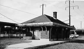 ELKTON (PRR) - Cecil County. Brick. Northbound side. No longer used as a depot. Now used by Amtrak maintenance of way. Photo taken 2003.. Also southbound waiting shelter, metal.. Both structures fenced from right of way.