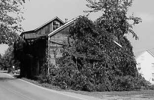 ROHRERSVILLE (B&O) - Washington County. Trego Road 3/10-mile south of Millbrook Road. Frame. Had combined use as depot and store. Private use in deteriorating condition, substantially covered by vegetation. Photo taken 2003.